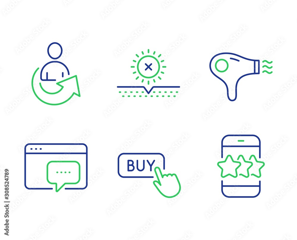 Buy Button Seo Message And Share Line Icons Set No Sun Hair Dryer And Star Signs